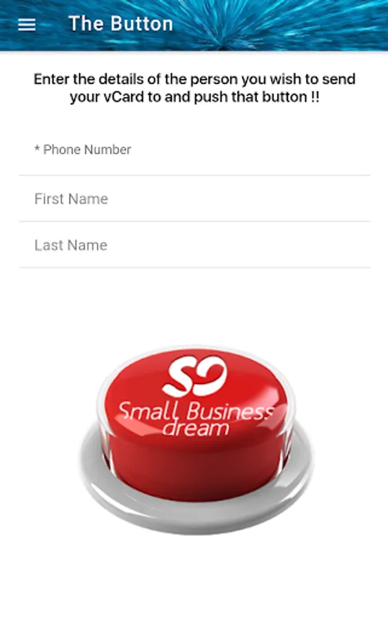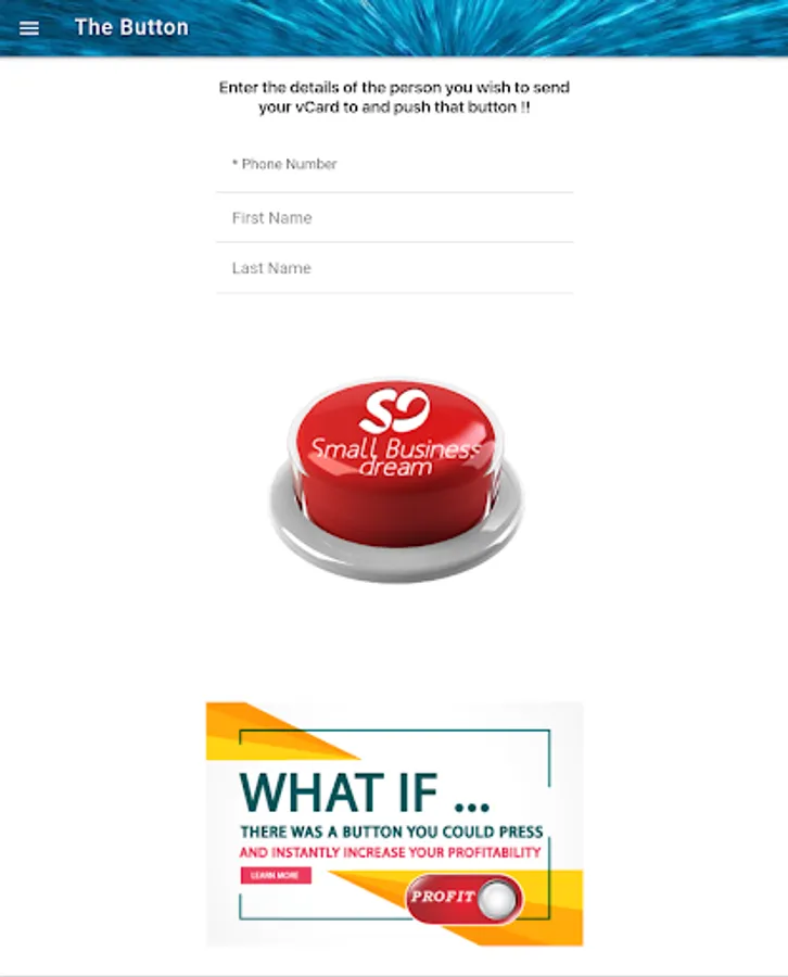 The ultimate business networking app for those who realize carrying business cards to networking events is not as common as it used to be. Interactive and fun, you simply ask your prospect their name and phone number, then turn the phone to them and say, “Please push the Button” and you can send them a pre-formatted message and your Vcard by text message.