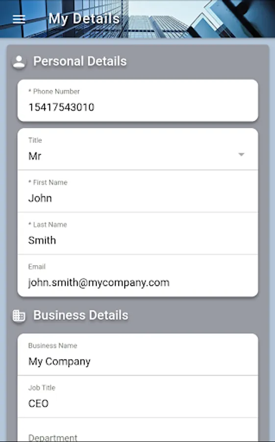 • Set your Small Business Dream options then have your Contacts sync in real time with your SBD account