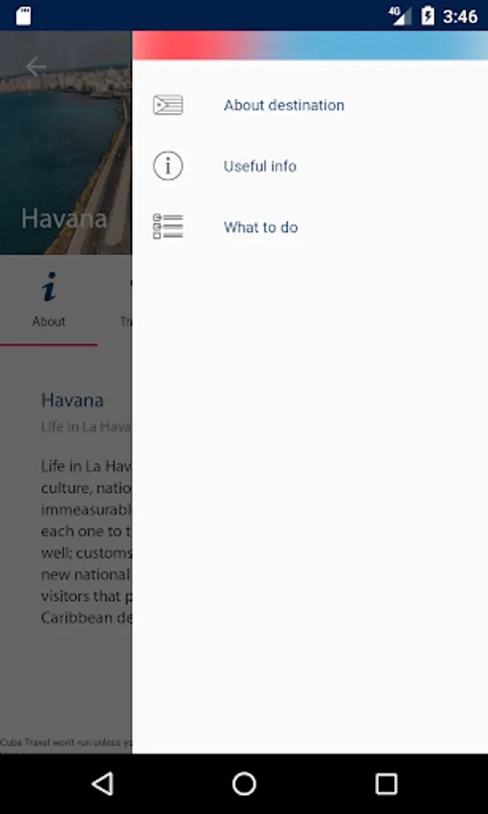 The new app of Cuba Travel, Official Tourism Website of Cuba, is your guide to discover the most fascinating destinations of the Caribbean. In the Cuba Travel app you’ll find the best travel guides to explore Havana, Varadero, Santiago de Cuba, Cienfuegos, Camaguey and all the Cuban cities you’ve always wanted to visit. Download today the Cuba Travel official app and start planning your trips to Cuba from your mobile device!