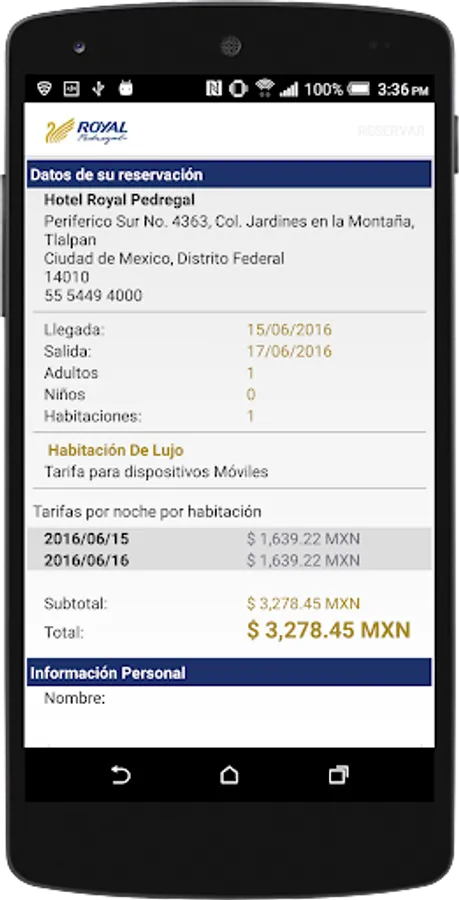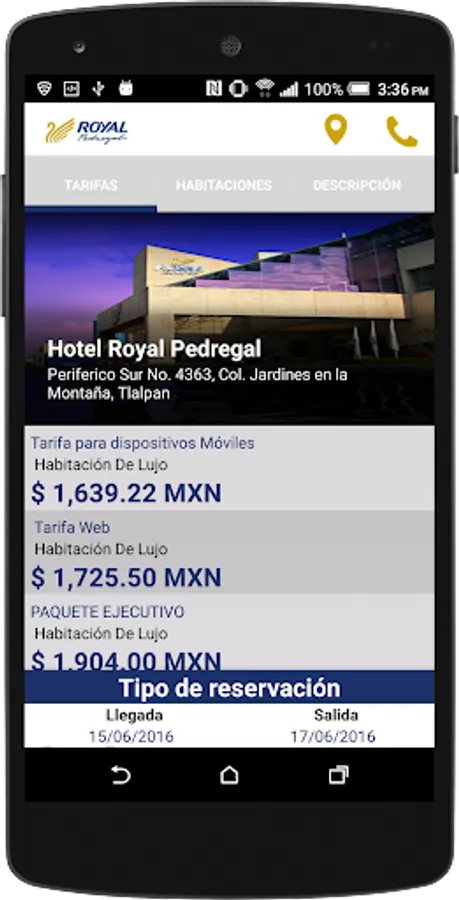 Download the Royal Pedregal Hotel free app and book the ideal Mexico City hotel deal for you. Get to know a simple and comfortable way of making hotel reservations from your mobile device. What are you waiting for? Download this new app, check availability and book easily the best rate of our Mexico City hotel near Perisur.