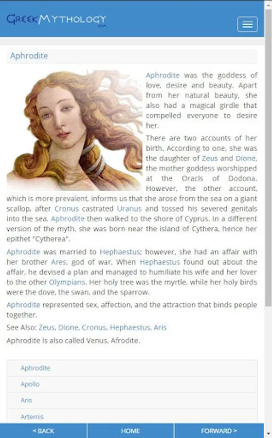 Get super-fast information on all subjects of Greek Mythology from GreekMythology.com. Includes details on Greek Gods like Zeus, Poseidon and Apollo, Greek Goddesses like Aphrodite, Hera and Athena and Titans like Atlas and Cronus.