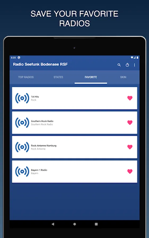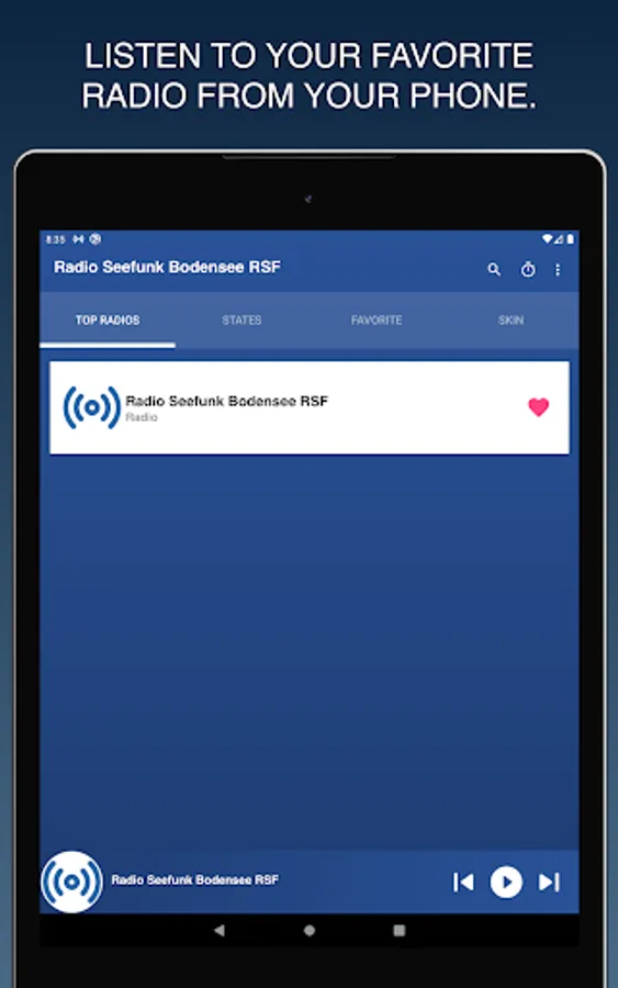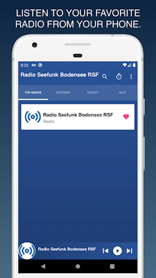 โ ๏ธ Attention: This application needs an internet connection, 3G / 4G or Wi-Fi networks. It is possible that some Radio Seefunk Bodensee RSF stations will not work because their stream is turned off.