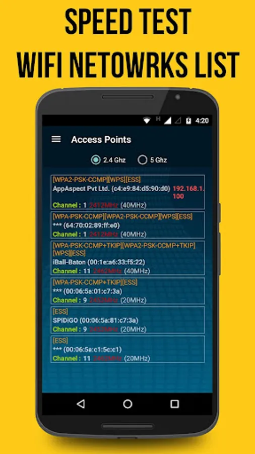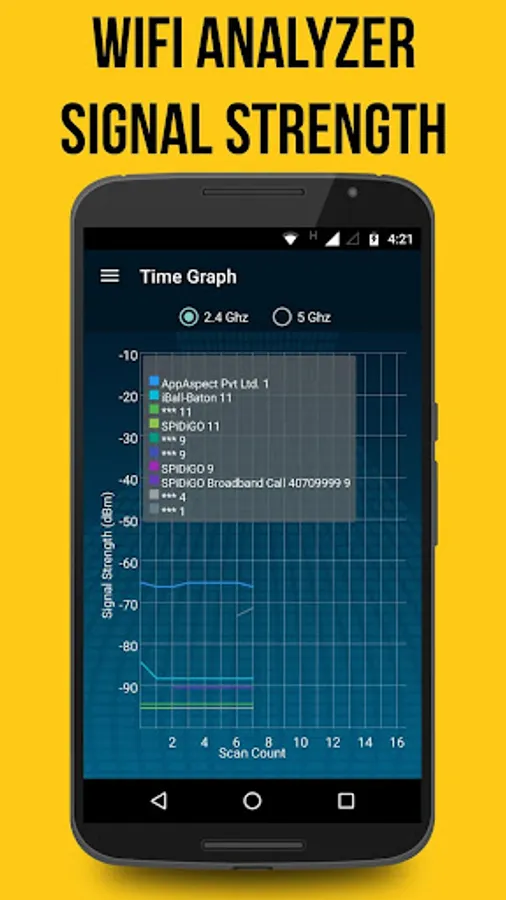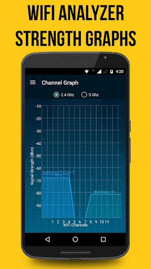 Examine surrounding WiFi networks and get identify other wifi networks by channel Rating, Channel Graph, Time Graph for signals and Wifi Router Vendors.