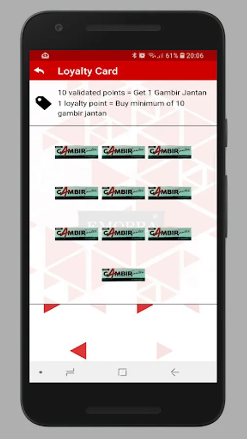 This app is for our Episor and Gambir Jantan clients to have a medium for Push Notification services, to purchase our products and having Loyalty Card redemption method, to have medium to distribute QR Coupon code to redeem any discount or any gift via QR coupon code, this app also will have a scratch card for our customer to get bonus.