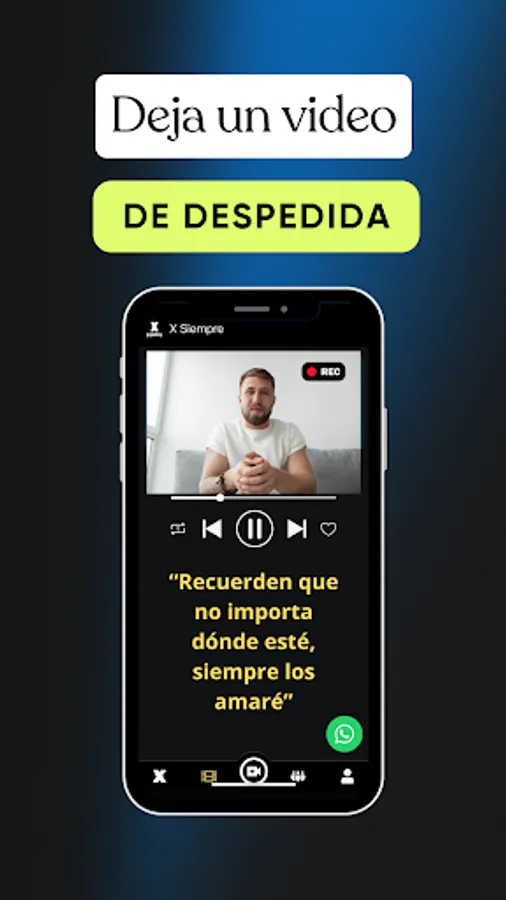 With X Siempre, you can record a farewell video to be delivered to whomever you choose in the event of your passing. Our platform ensures that the video is delivered securely and confidentially to the registered beneficiary.