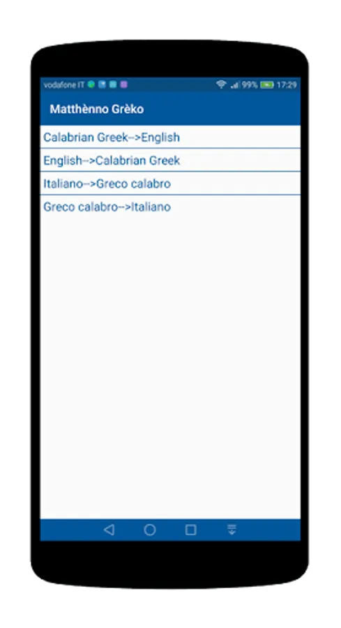 The application is structured so that it can select some themes to play and train to learn or improve their knowledge of the language of the Greeks of Calabria.