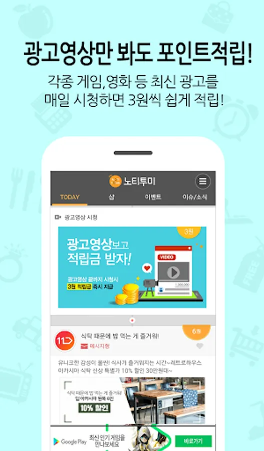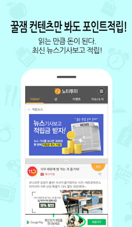- Every time you check Today's shopping information or participate in advertisements, points accumulate.