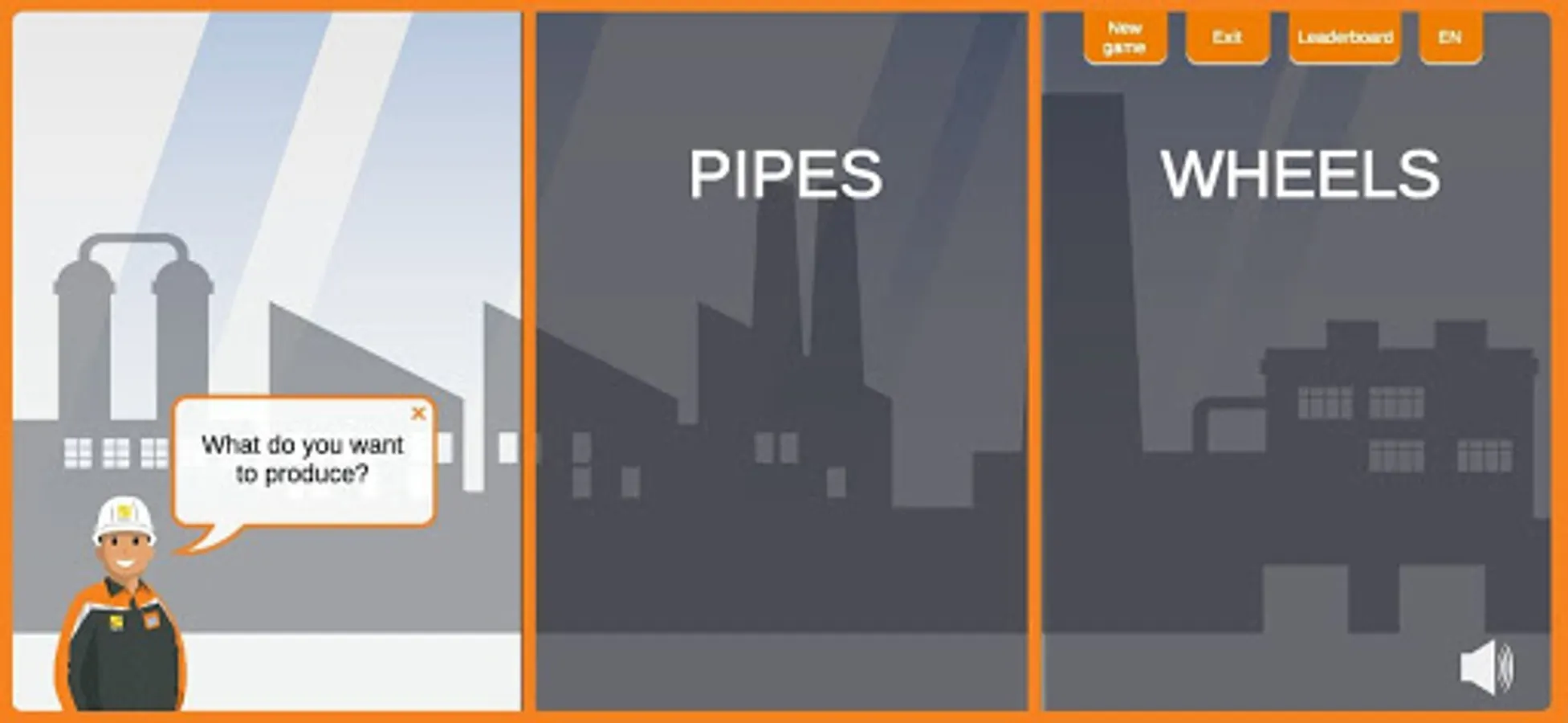 This game shows how the production process of making pipes and wheels looks like. You will study manufacturing step by step.