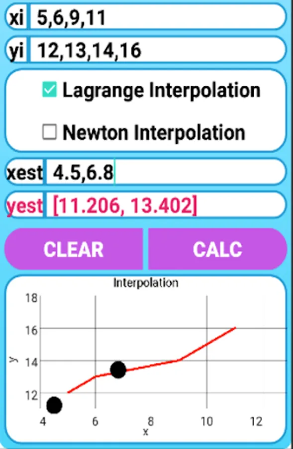 Interpolation calculator is a free mathematical tool that helps to solve Lagrange and Newton interpolations. This digital interpolation calculator provides you the easiest and convenient method to determine a value between two or more values. However, this interpolation calculation app provides simple solutions with high accuracy.