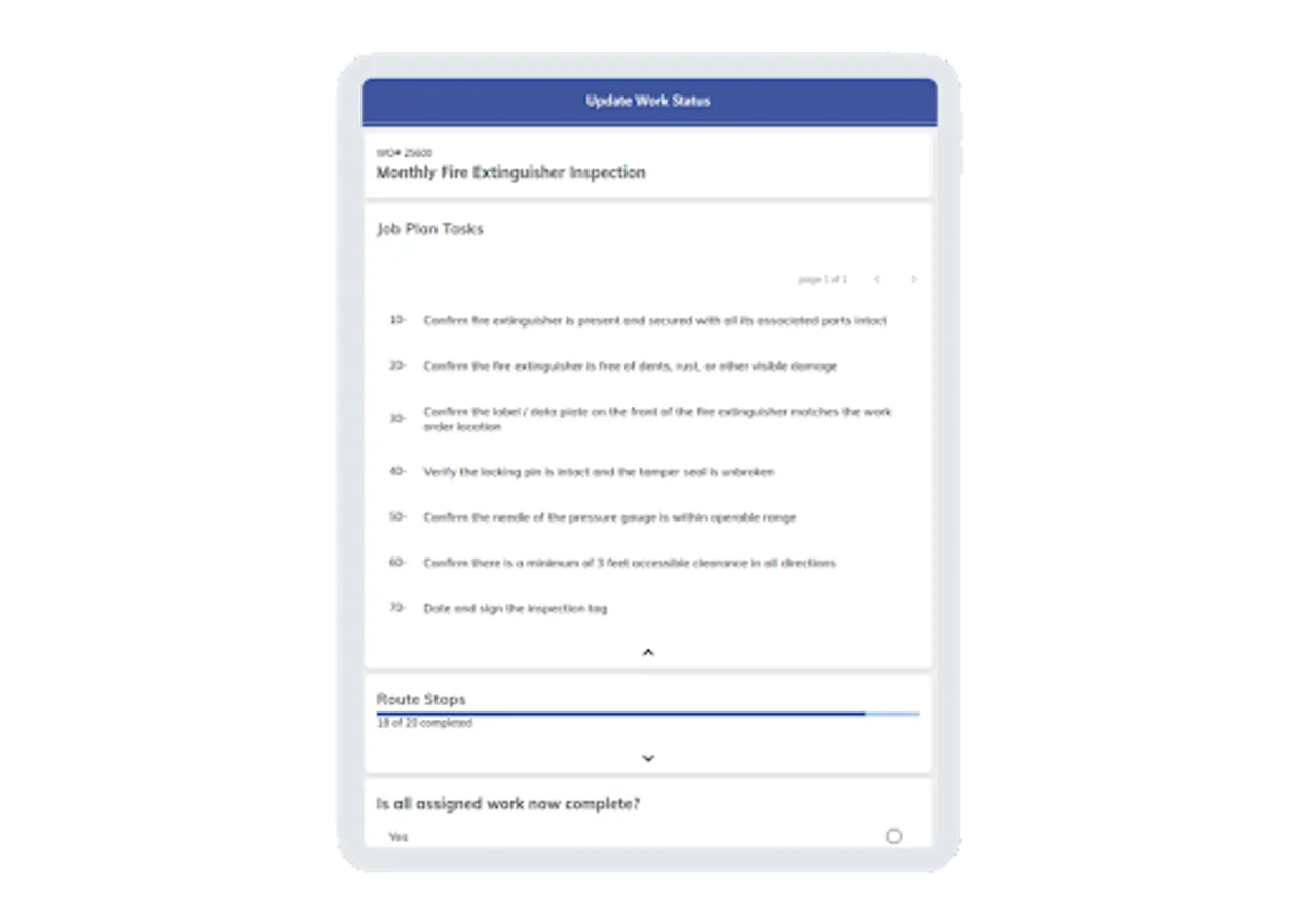 • Leverage Maximo Inspection Forms, Job Plans, and Multi-Stop Work Orders.