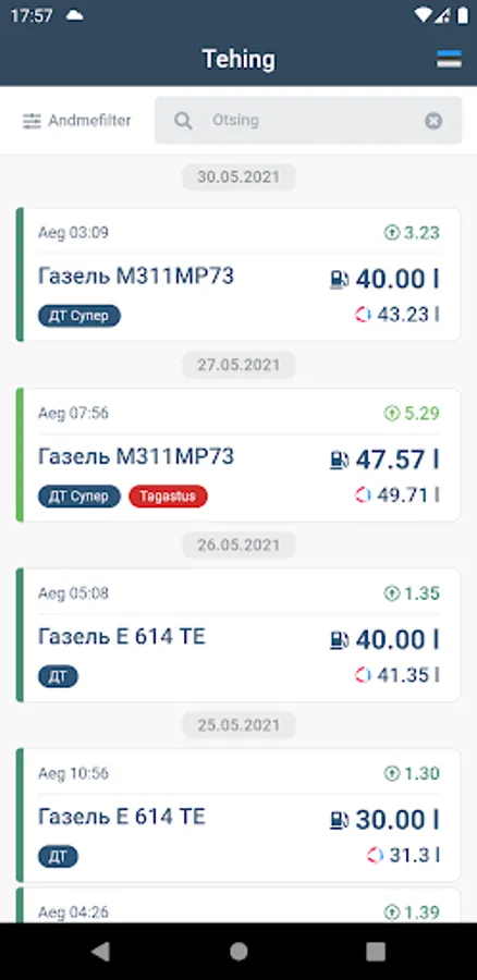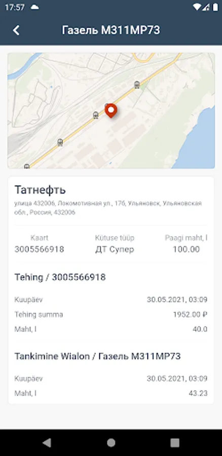 The application allows you to analyze and compare transactions received from various transaction platforms with real data on the incoming fuel in the tanks of vehicles.