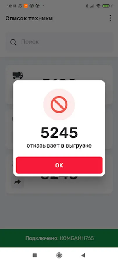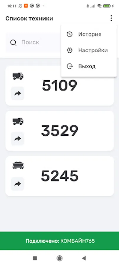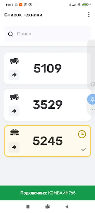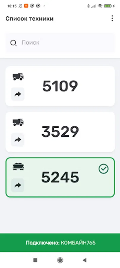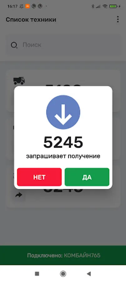 The app for the InSmartSeeds platform provides interaction between transport drivers and machine operators working on agricultural combines for the confirmed transport of crops from the field to storage and processing.