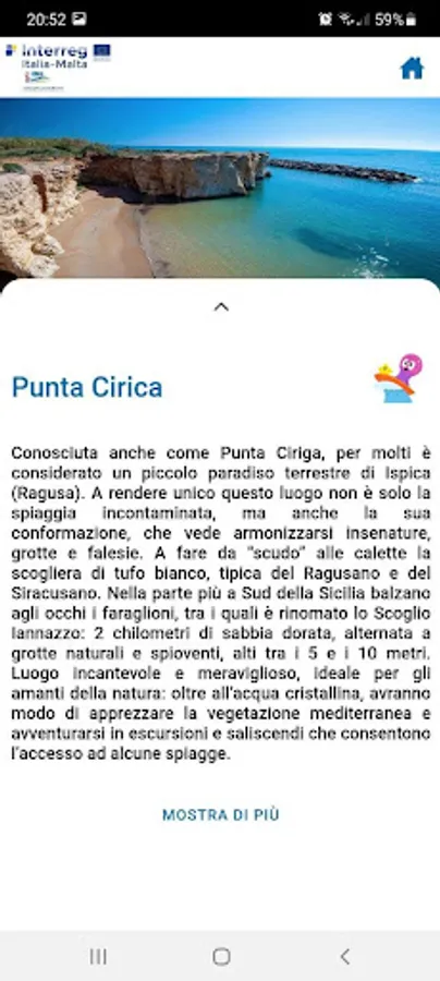 It provides real-time information on the marine weather conditions of the Sicilian Channel. Make wave forecasts near the coast. It informs tourists and residents about which activities can be carried out safely on the beaches of the Libero Municipal Consortium of Ragusa. It sends an alert if the sea conditions are not compatible with both recreational and work coastal activities. To these services, scrolling the app's drop-down menu, you will notice other functions and information services. Among these, places to visit, activities and attractions for citizens and tourists, which will allow the promotion of Sicily and its coastal areas. In addition, interesting sections dedicated to telling the story, the type of coast and the nature of the places affected by the project. The App was created by the Kore University of Enna, the Department of Civil Engineering and Architecture (Dicar) of the University of Catania, the University of Malta and the Libero Municipal Consortium of Ragusa, as part of the NEWS project. - Nearshore hazard monitoring and Early Warning System - from the funds of the “INTERREG VA Italia Malta” Cooperation Program.