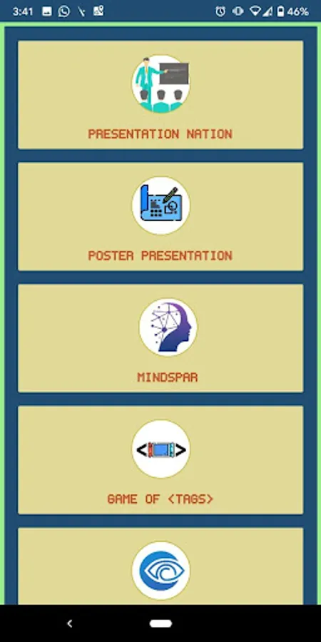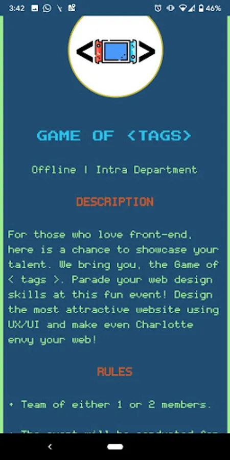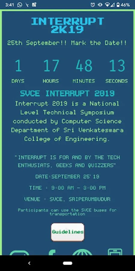 The app contains a list of features to ensure the participants have an amazing experience during their stay at the university, the app contains information about the events happening in the symposium and will help the students navigate their way in the college.