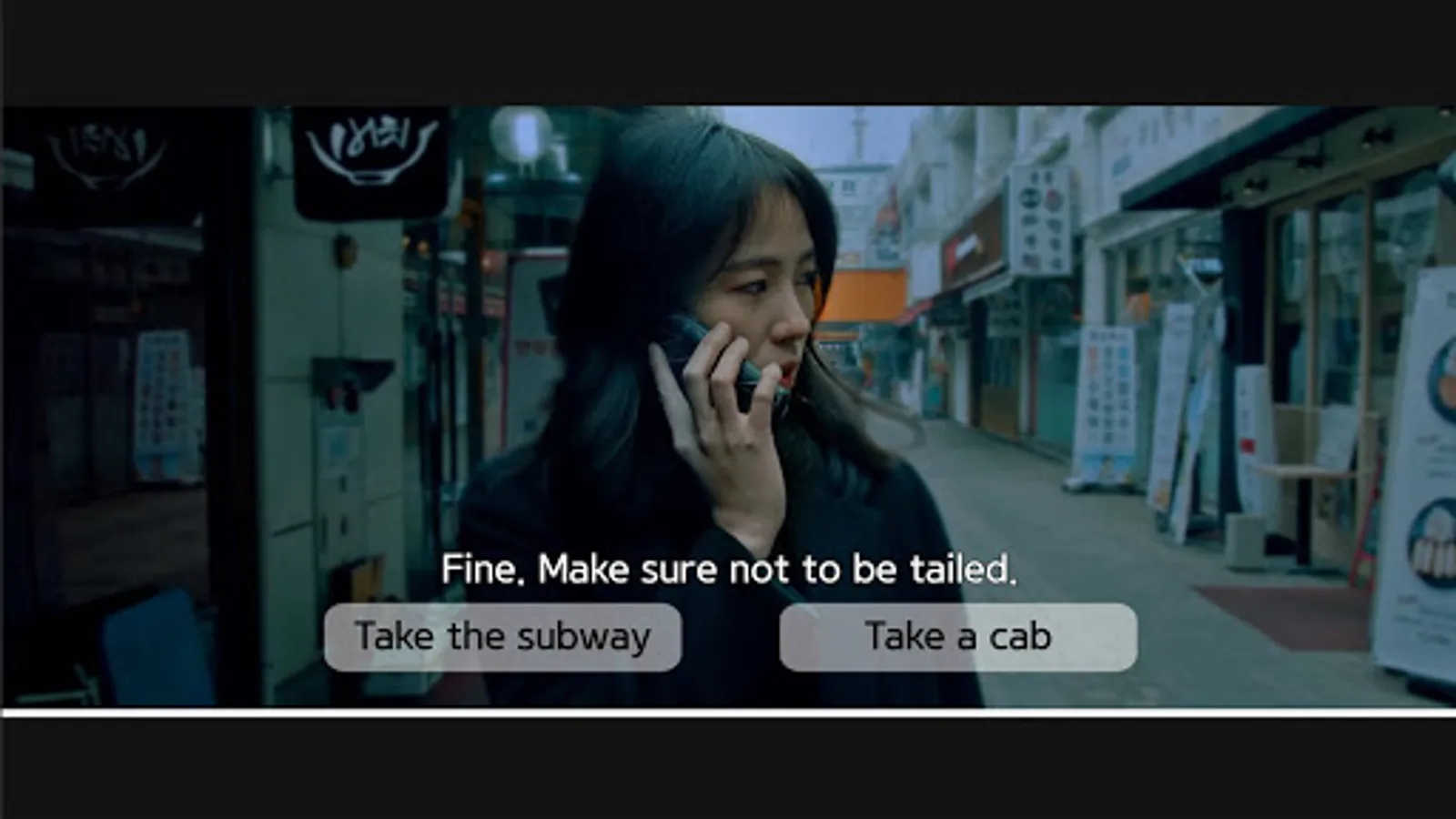 Jung-ah the whistleblower, who wants to accuse corruption of an organization steals a confidential file and seeks to disclose it with the help of her aides. However, she gets threatened to be killed by chasers from the organization. Will Jung-ah be able to evade chasers and reveal the file to the world? You will actively select means of movement, behaviors, and paths in the story and your choices make the whole story.