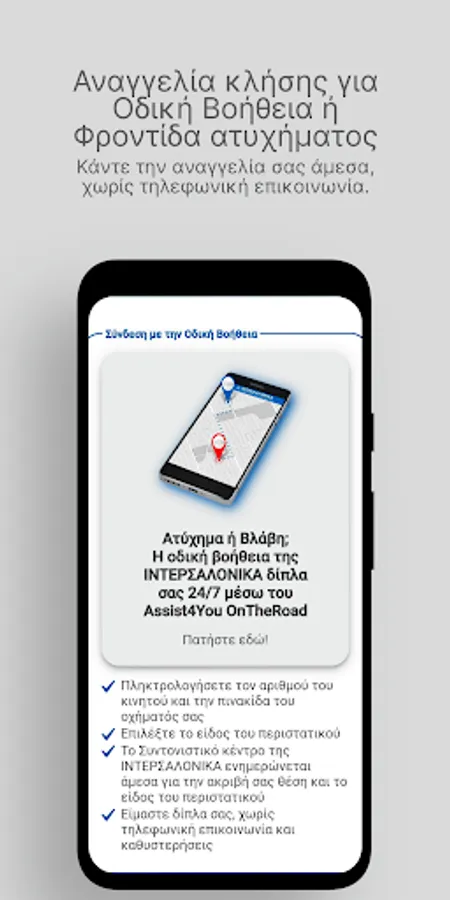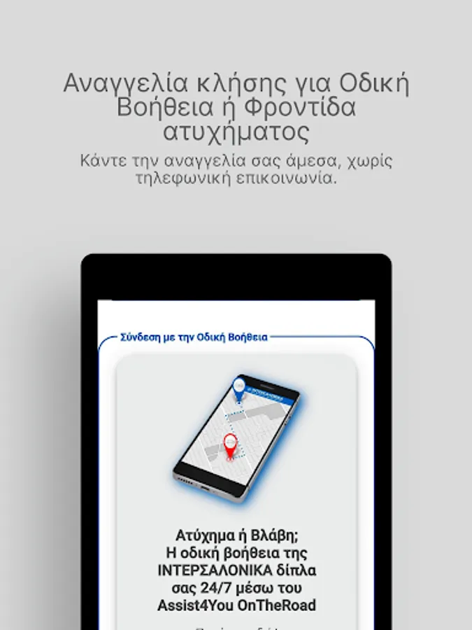 INTERSALONIKA's Roadside Assistance through the Assist4You OntheRoad service is by your side 24/7 and comes to you, without telephone communication and without delays: