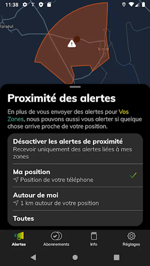A la carte alert notifications, thanks to the simplified settings of "Proximity", "Category", and "Places of interest", accessible from the main screen of the application.