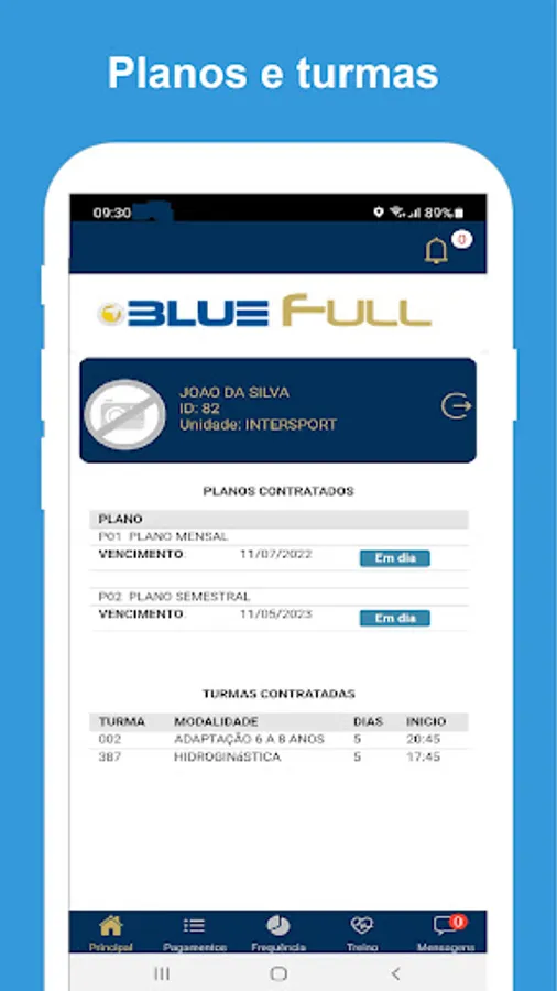 With the Blue Students App you can consult your registration data, plans and training.