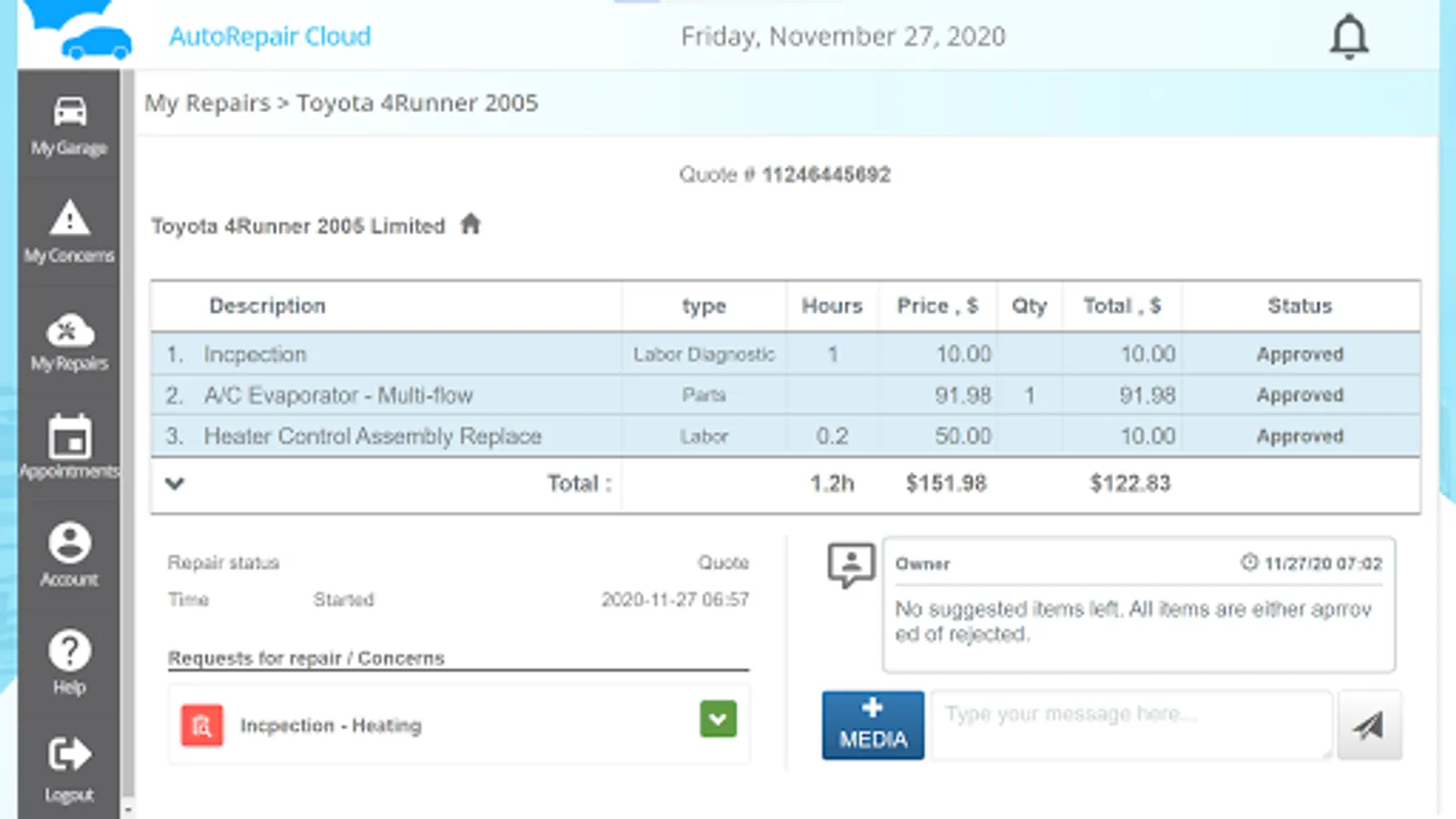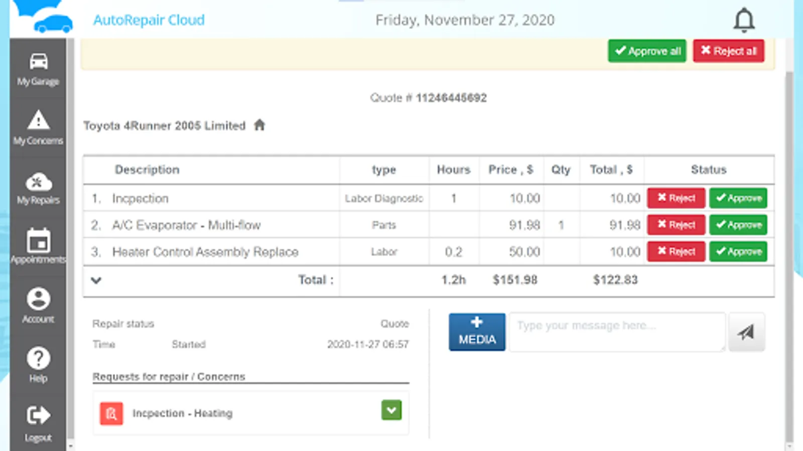 - it makes one workflow with repair shops: approve process, chat recording, image attachment