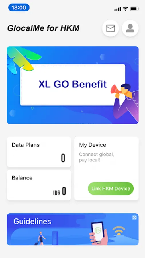 GlocalMe for HKM app is designed to manage your MiFi HKM powered by GlocalMe, top up, buy package, and check the data usage and device status.