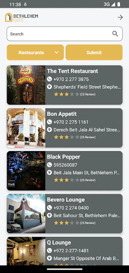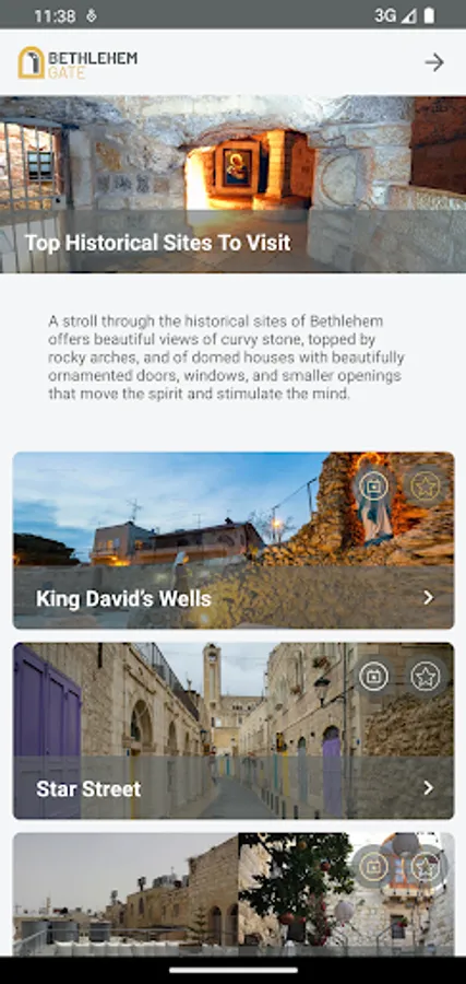 Bethlehem Gate application will bring many new features and a vast array of information in Bethlehem city and area. From descriptions and pictures to opening hours and locations, the platform will give an opportunity to its users to learn about the many treasures and attractions Bethlehem has to offer. This platform aims to transform raw data into information in order to generate credible knowledge. Which will allow the visitor to see the city and navigate its sites before their physical presence in the city the system must be able to take data, put the data into context, and provide tools for aggregation and analysis. On the other hand, this project target is to provide a database that contribute in enhancing the roll of the tourism sector in Bethlehem governorate. It is expected that the platform will benefit all concerned involved in the tourism sector and those working in handicrafts and small business owners. This Application will enhance the economic activities in the governorate forward and will support economic sustainability, Also, the platform will be always up to date to provide information in the best way possible.