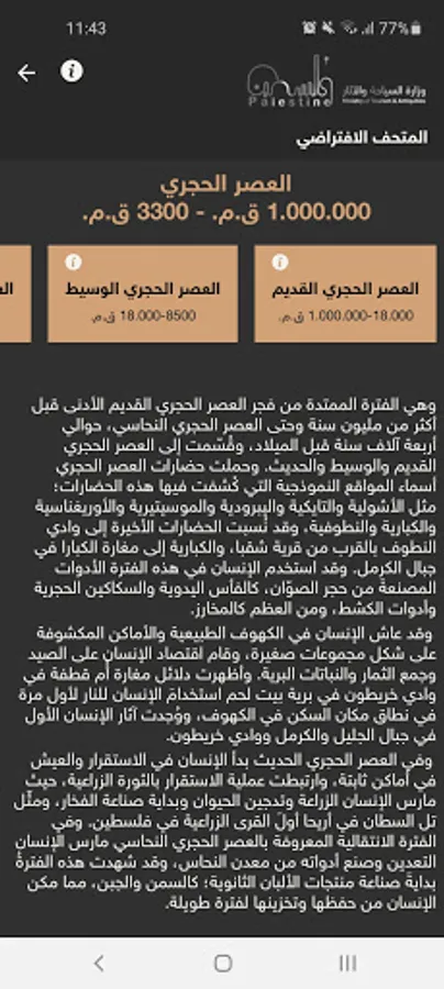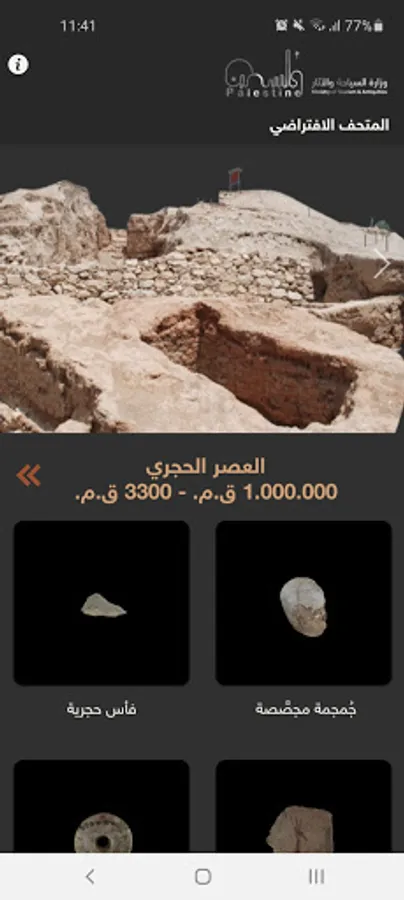 The App is decorated with photographs from archaeological and heritage sites in Palestine that represent examples of prominent places where the exhibited objects were found.