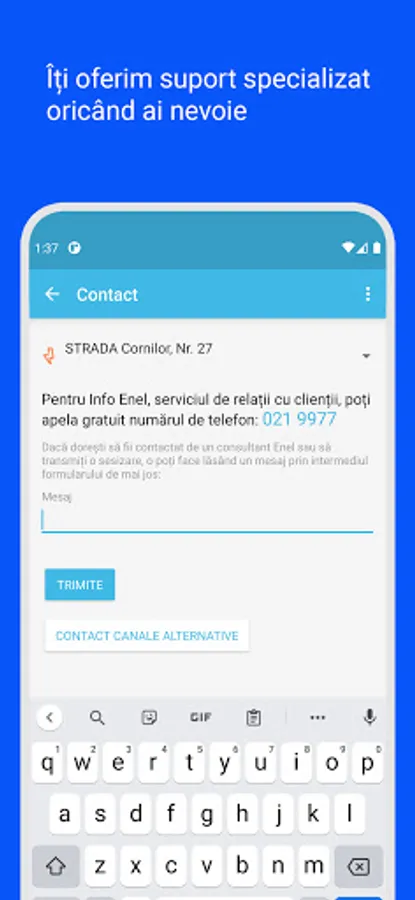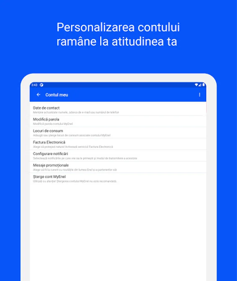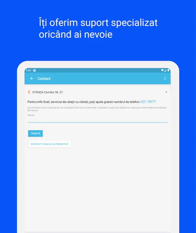 We are waiting for your recommendations and suggestions regarding MyEnel app on the email address: mobile.ro@enel.com.