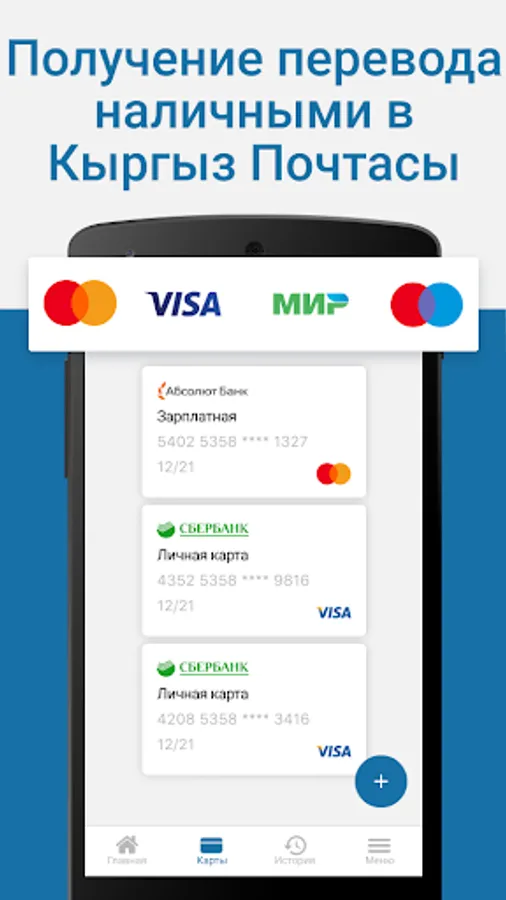 Transfers from a card to cash - a mobile application that is designed for the convenience of users when transferring funds to Kyrgyzstan.