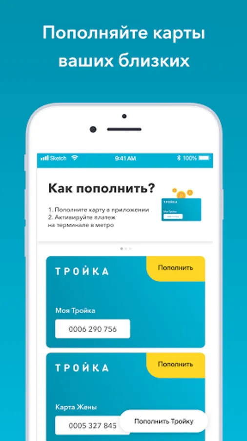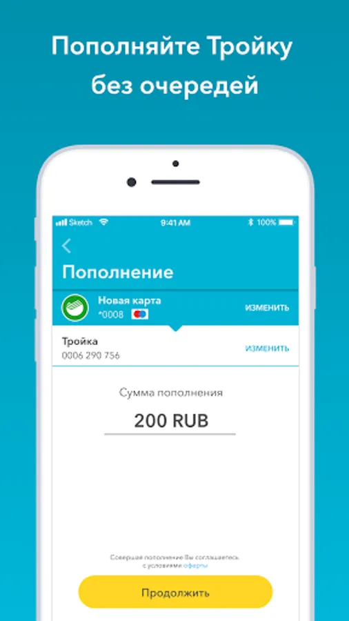 The app allows you to fill a transport card "Troika" quickly and without the commission in any place and at any time using a credit card MasterCard®, Maestro® and Visa.