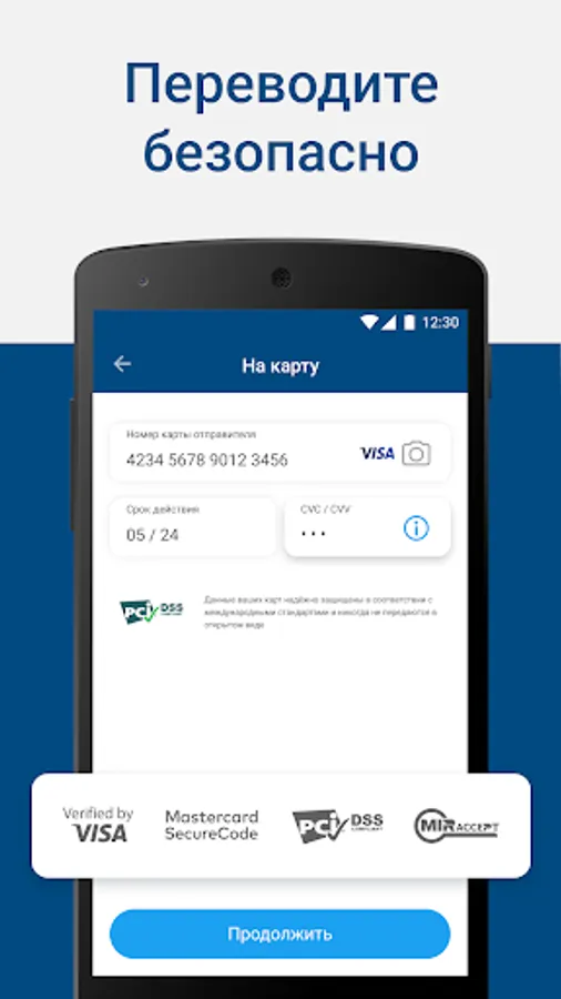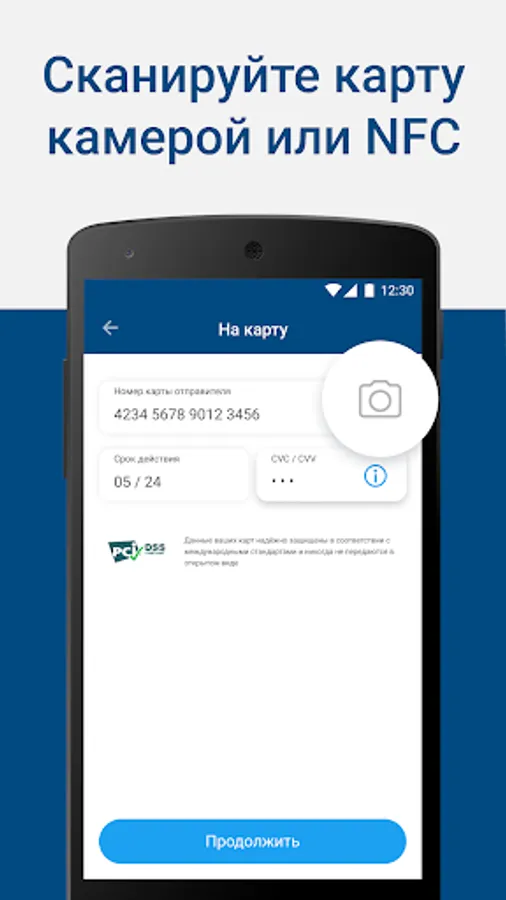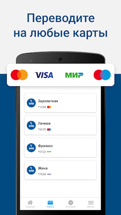 Transferring funds from card to card is available without registration. You do not need to enter the card number yourself, it is scanned by the phone's camera. You can conveniently transfer money using the recipient's phone number.