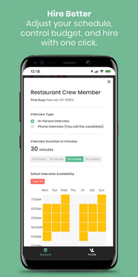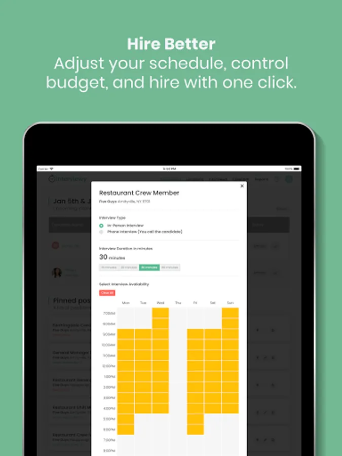• Adjust your schedule, control budget, and hire with one click.