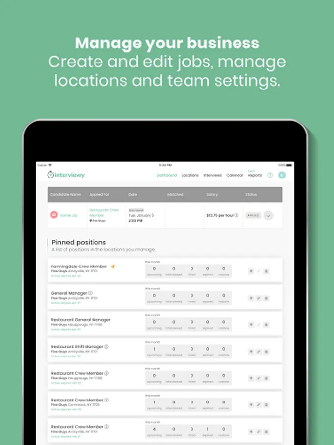• Create and edit jobs, manage locations and team settings.