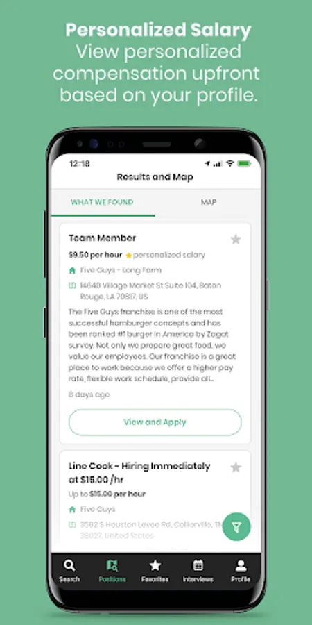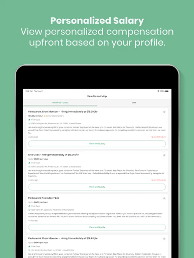 • Job search – browse our list of job openings near you with personalized compensation displayed upfront. Find jobs using free form search and preferred location. Our search has been optimized to return the most relevant positions based on search query and location.