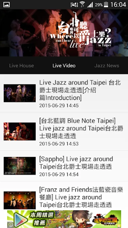 This is a promotion "into the scene to listen to jazz," the non-profit audio-visual program. Build 23 Jazz players, field recording, video takes you to 12 look over the jazz scene in Taipei!