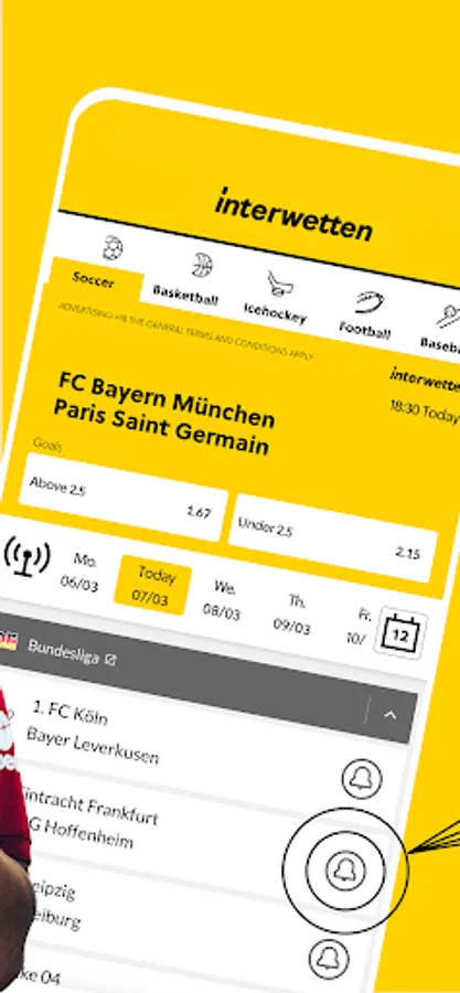 Become an insider in the NHL, NBA, NFL, MLB, NCAA or for Deutsche Bundesliga, 2. Bundesliga, 3. Liga, Frauen Bundesliga, Premier League, Serie A, LaLiga, Champions League, Europa League and many more sports tournaments with the Interwetten Livescore app and receive all sports scores live and in real-time goal alerts and the latest transfer news with the Interwetten livescore and sports alerts on your smartphone!