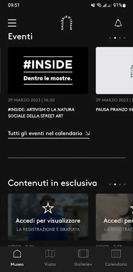 Registration is required in order to access the extra multimedia resources. It is, however, possible to use the app in "Guest" mode, simply to access information along the exhibition.