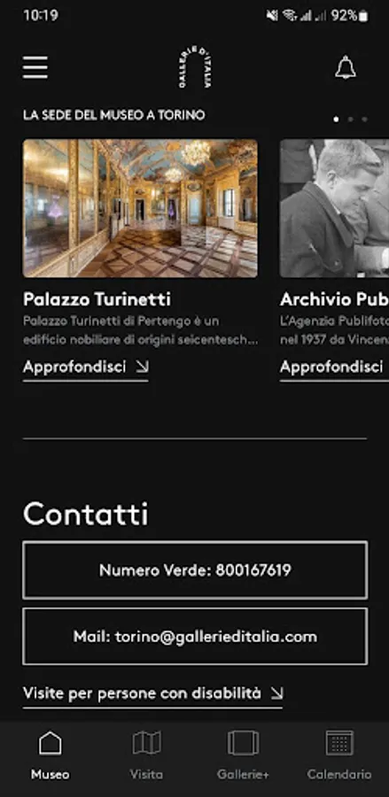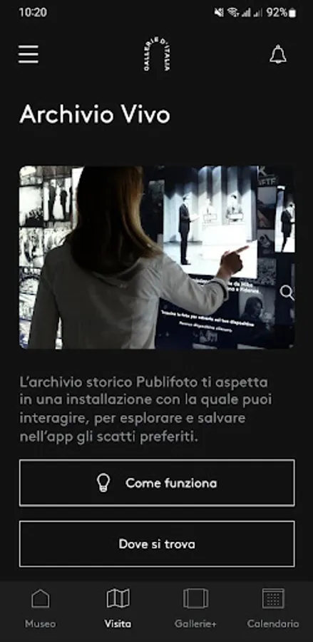 Gallerie d’Italia is the digital guide to the new Intesa Sanpaolo’s museum in Turin, which allows users to enjoy an "advanced" visitor experience: the user will be taken on an interactive journey to discover the Bank’s new cultural hub, Gallerie d’Italia – Torino, in an itinerary that ranges from temporary exhibitions of internationally renowned photographers to the history of the last century revealed through photographs stored in the Publifoto Archive and the permanent collection of Piedmont art housed on the Noble Floor.