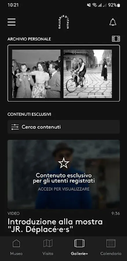 Gallerie+ - repository of extra contents and images saved by the user thanks to the interaction with "Archivio Vivo"