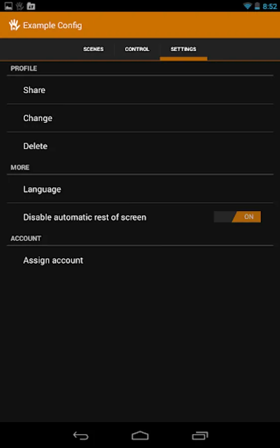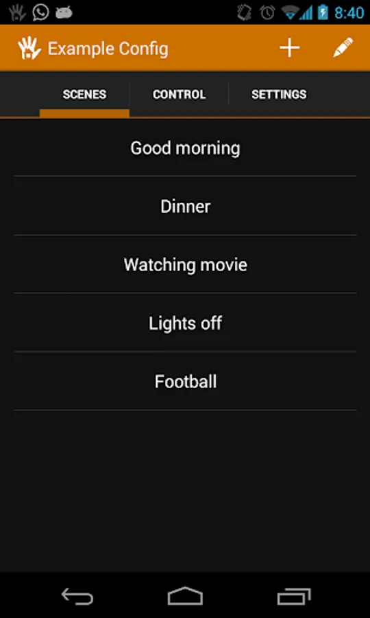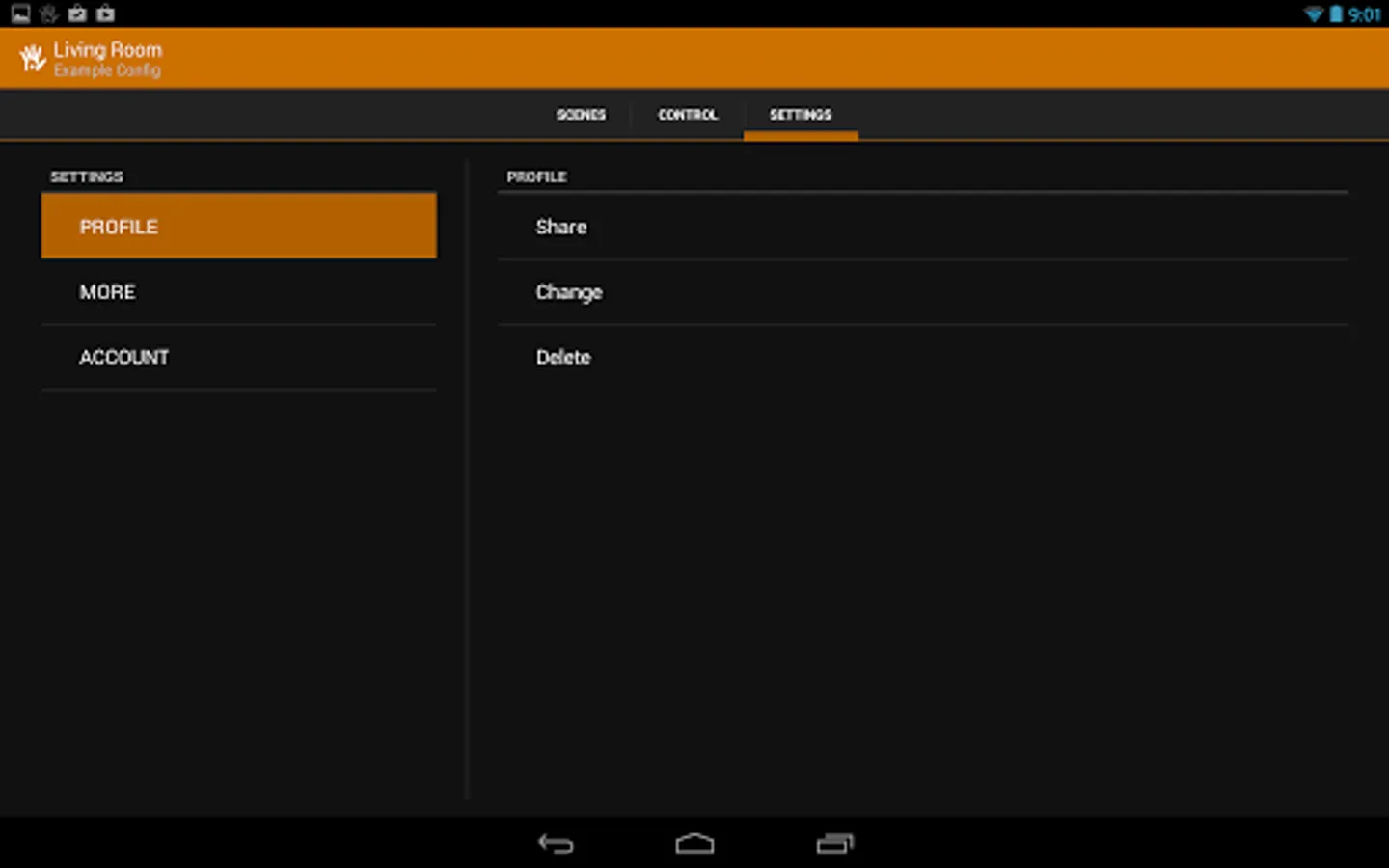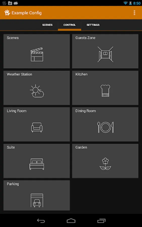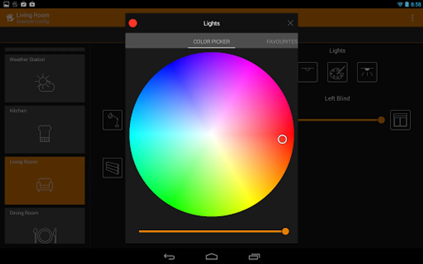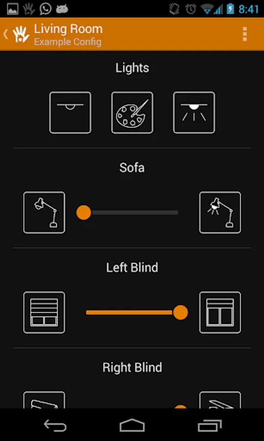 Houseinhand KNX allows you to create your own custom environments. You can set up, as an example, the “relax” environment that will adjust the main light to 30% and configure the setpoint temperature to 25ºC.