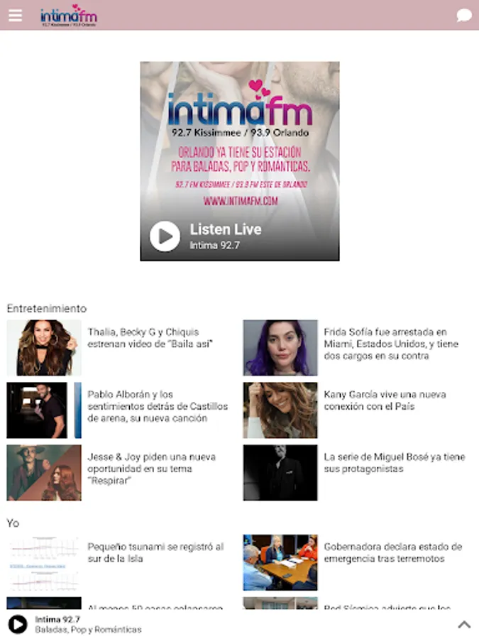 Intima Fm features the best latin hits of artists like Luis Miguel, Luis Fonsi, Shakira, Juanes, and many more! Broadcasting live from central florida.