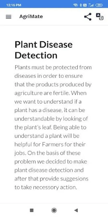 Plants must be protected from diseases in order to ensure that the products produced by agriculture are fertile. When we want to understand if a plant has a disease, it can be understandable by looking of the plant’s leaf.Being able to understand a plant will be helpful for Farmers for their jobs. On the basis of these problem we decided to make plant disease detection and after that provide suggesions to take necessory action.