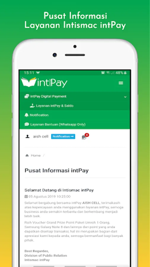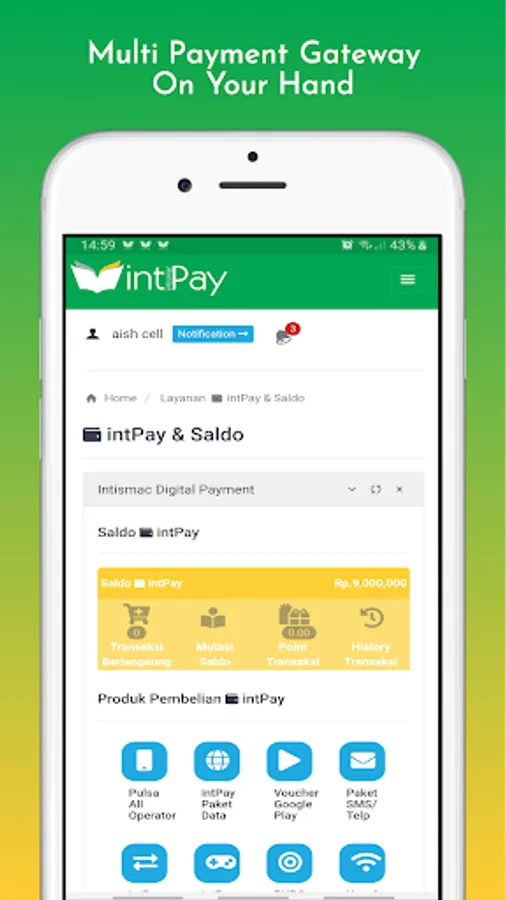 intismac intpay is a Multi Payment Gateway such as topping up pulses, data packages, PLN tokens, game vouchers & BPJS bills and many others at competitive prices and good transaction speeds. Intpay is here to make it easier for you, especially the credit outlet owner who needs one tool for many types of transactions.