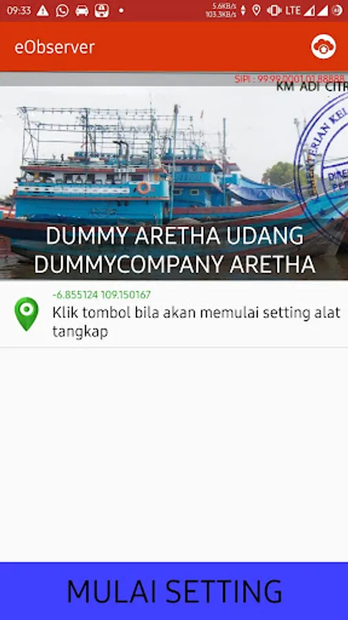 Application used in monitoring activities directly on fishing vessels and fishing vessels by recording fish caught, fishing areas, fishing time, types of fishing equipment and fishing aids, including activities to move fish catches from ships fishing to fishing vessels and / or fish allowed vessels.