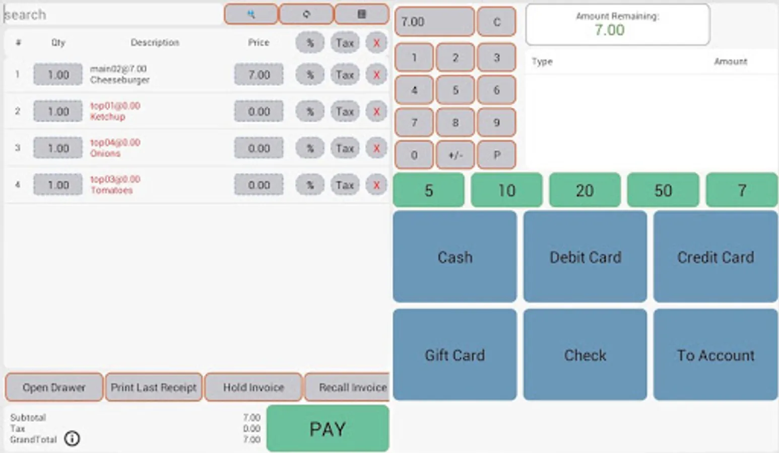 - On screen keypad lets you ring up different items without prior entry.