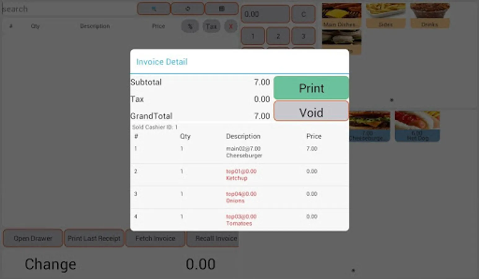 - Single item void and whole invoice void.