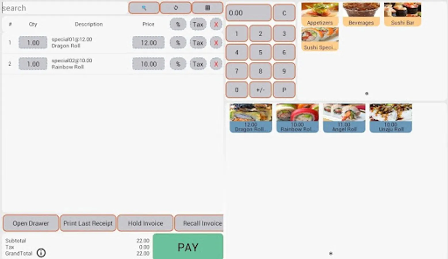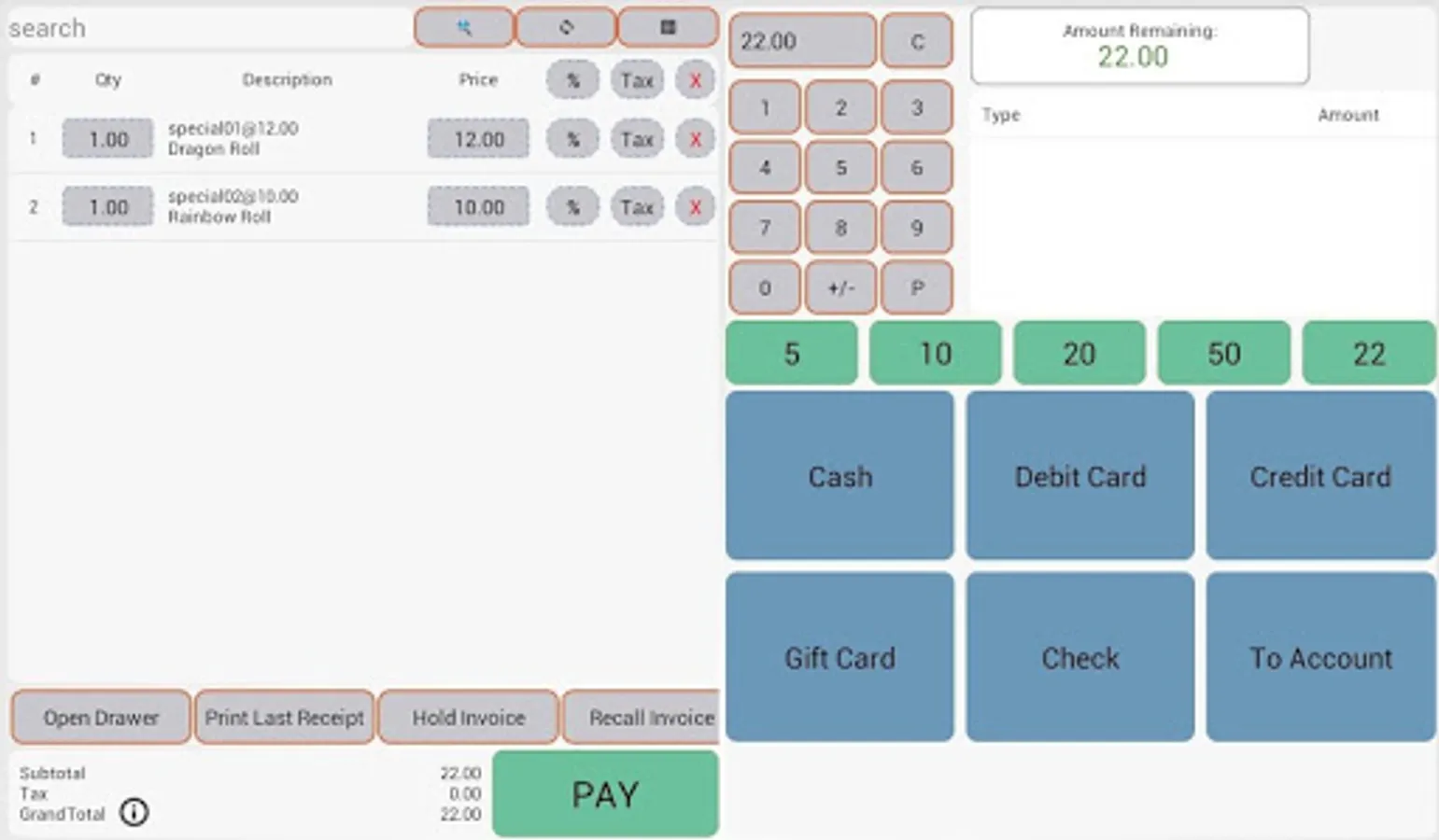 Sircle POS Sushi is an easy to use Point of Sales system software that is perfect for quick service sushi restaurants. Sircle organizes and keeps track of your inventory stock, while keeping track of sales and profit. The Sircle Backoffice website works in tandem with the Sircle software to allow for easy management of employees, departments, and more. Checkout options include cash, credit and debit*. For more details on payment processing please visit the payment processing tab at: http://www.sirclepos.com.