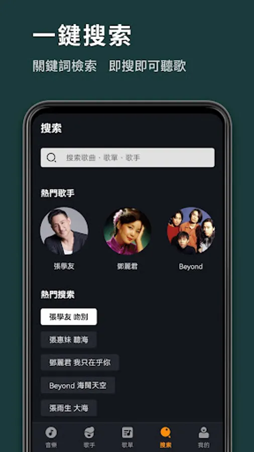 3: Find a song with one click, according to the first letter of male singer, female singer, group combination, and singer name, you can quickly and easily find the song you want to listen to;