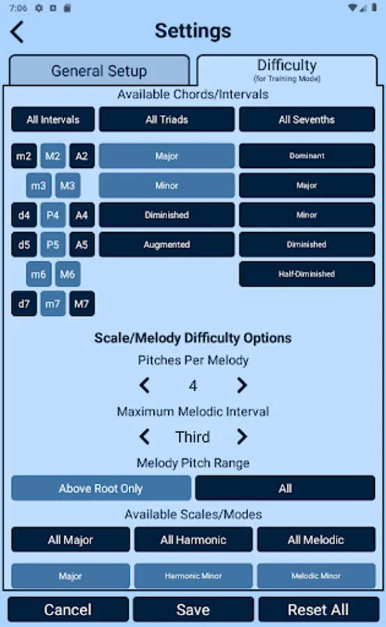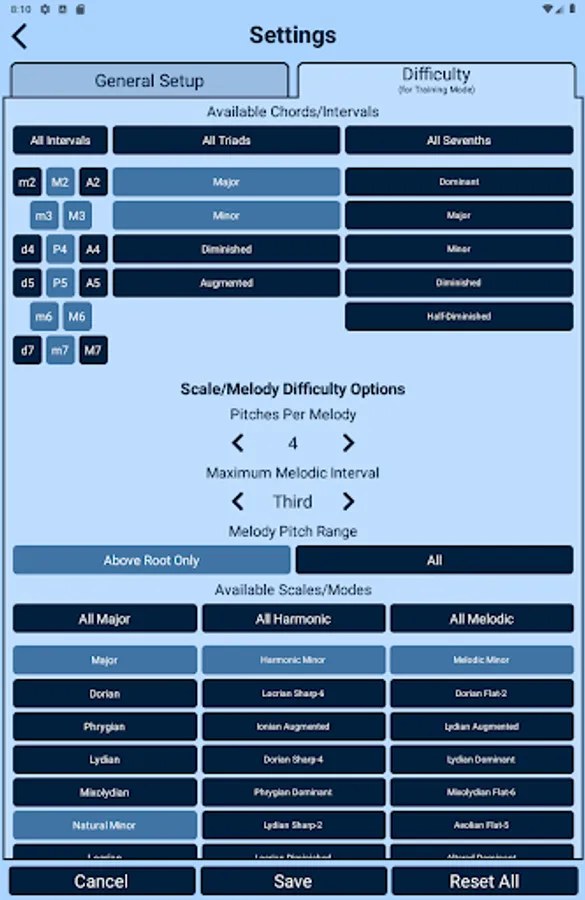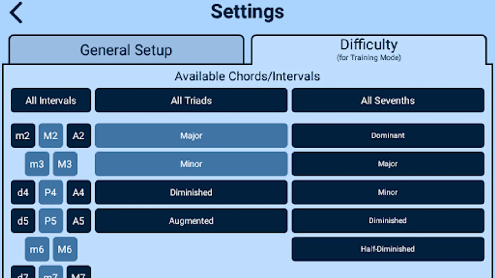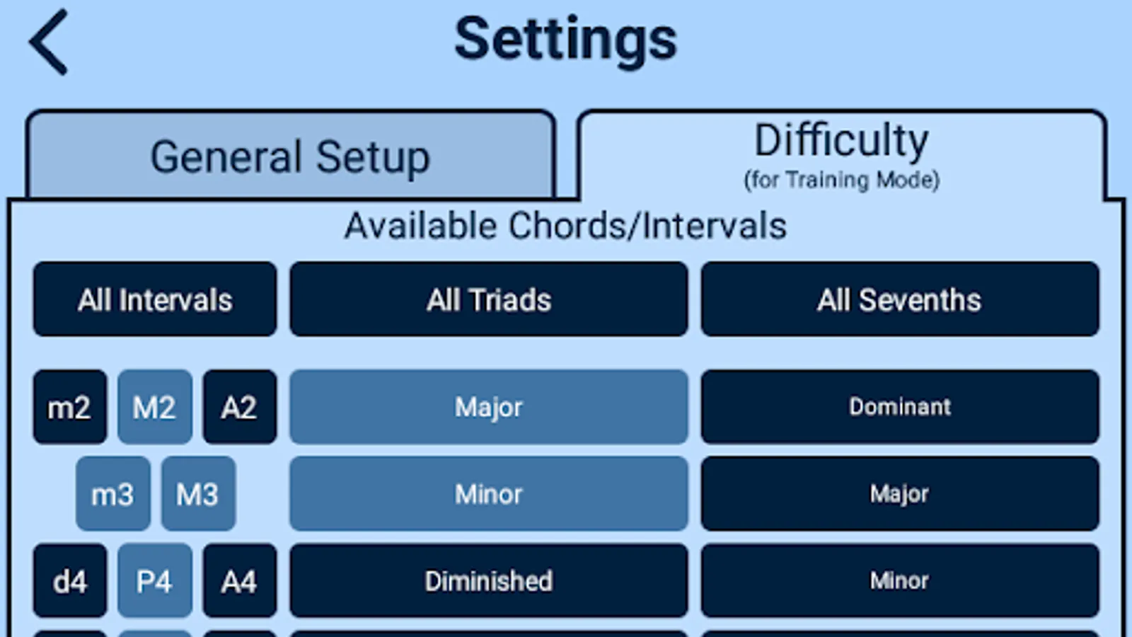 - Dozens of difficulty settings including full customization of the available scales, intervals, chords, and inversions