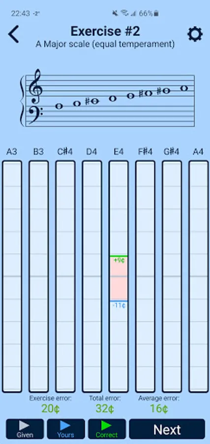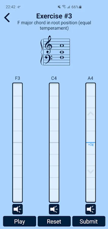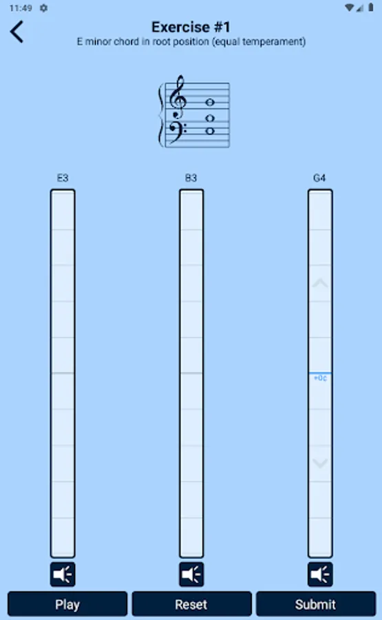 Learn to precisely tune pitches in randomly generated chords, scales and melodies, using equal temperament or just intonation!