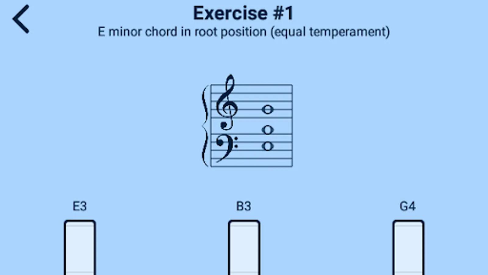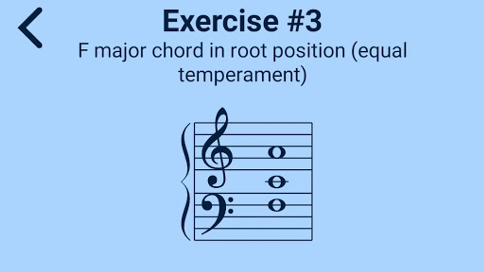 - Four types of intervals, major and minor chords, and major scales to tune in equal temperament or just intonation